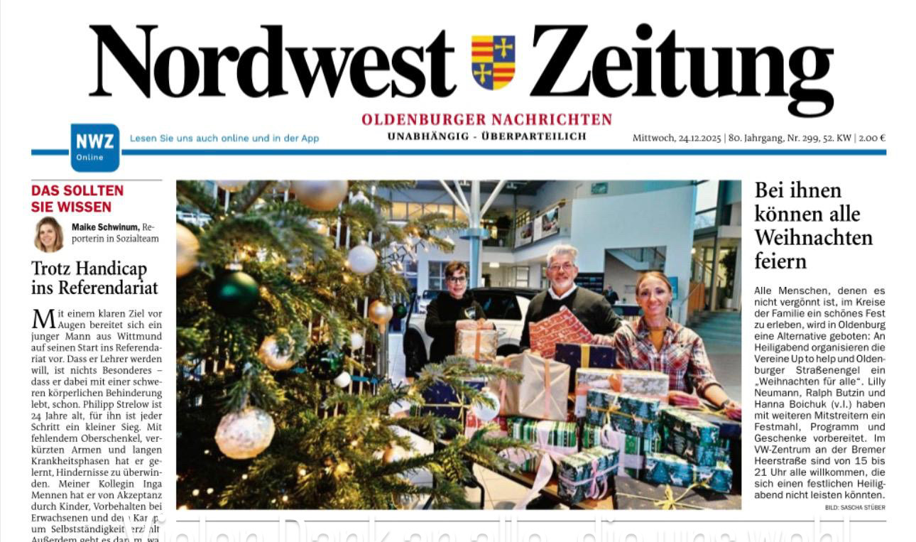 Bereits zum vierten Mal in Folge fand am Heiligabend die Aktion „Weihnachten für alle“ im Volkswagen Zentrum Oldenburg statt. Auch in diesem Jahr konnten zahlreiche Menschen begrüßt werden, die von Einsamkeit und Armut betroffen sind. Ziel der Veranstaltung war es, ihnen an diesem besonderen Tag zu zeigen, dass sie gesehen werden und Teil unserer Gesellschaft sind.